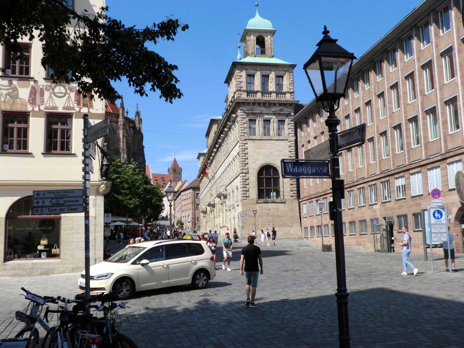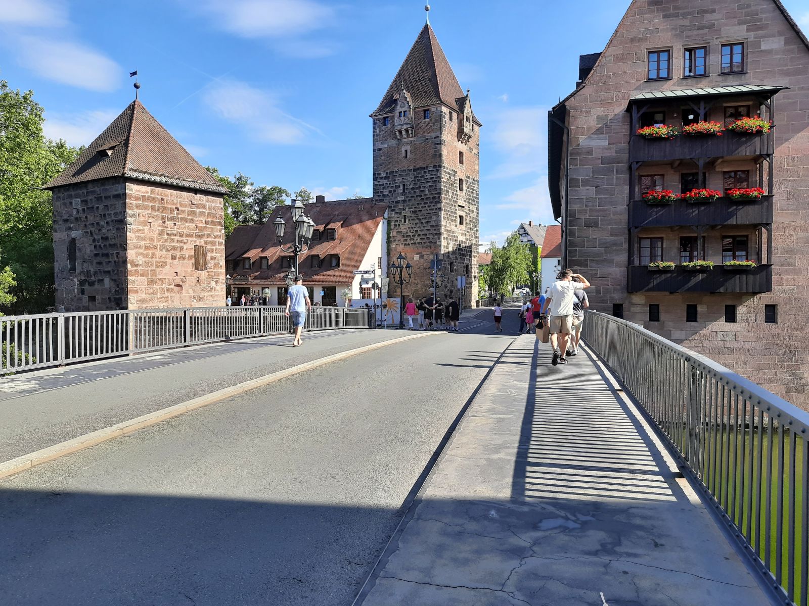 Auf nach Nürnberg, Auto in Tiefgarage und über Spitalbrücke in die City.