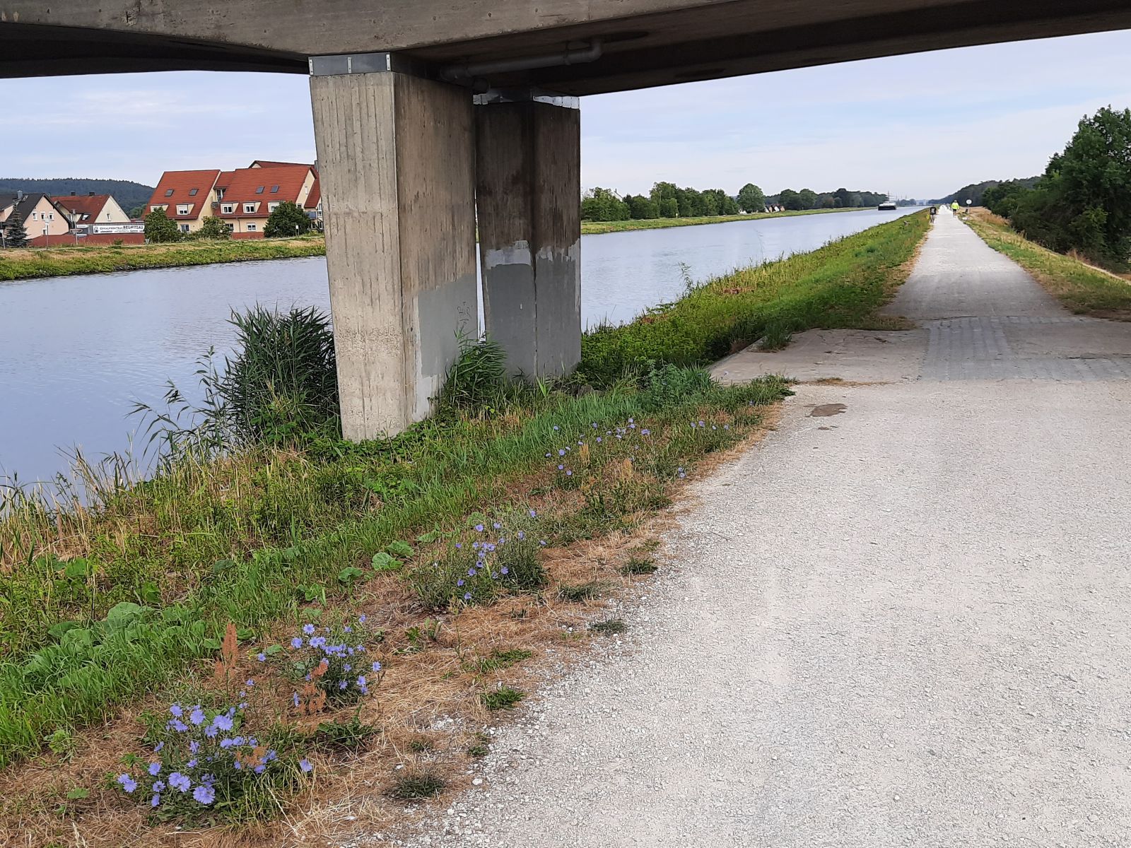 Untere Brücke entlang, im hintergrund die "Kunigunde".
