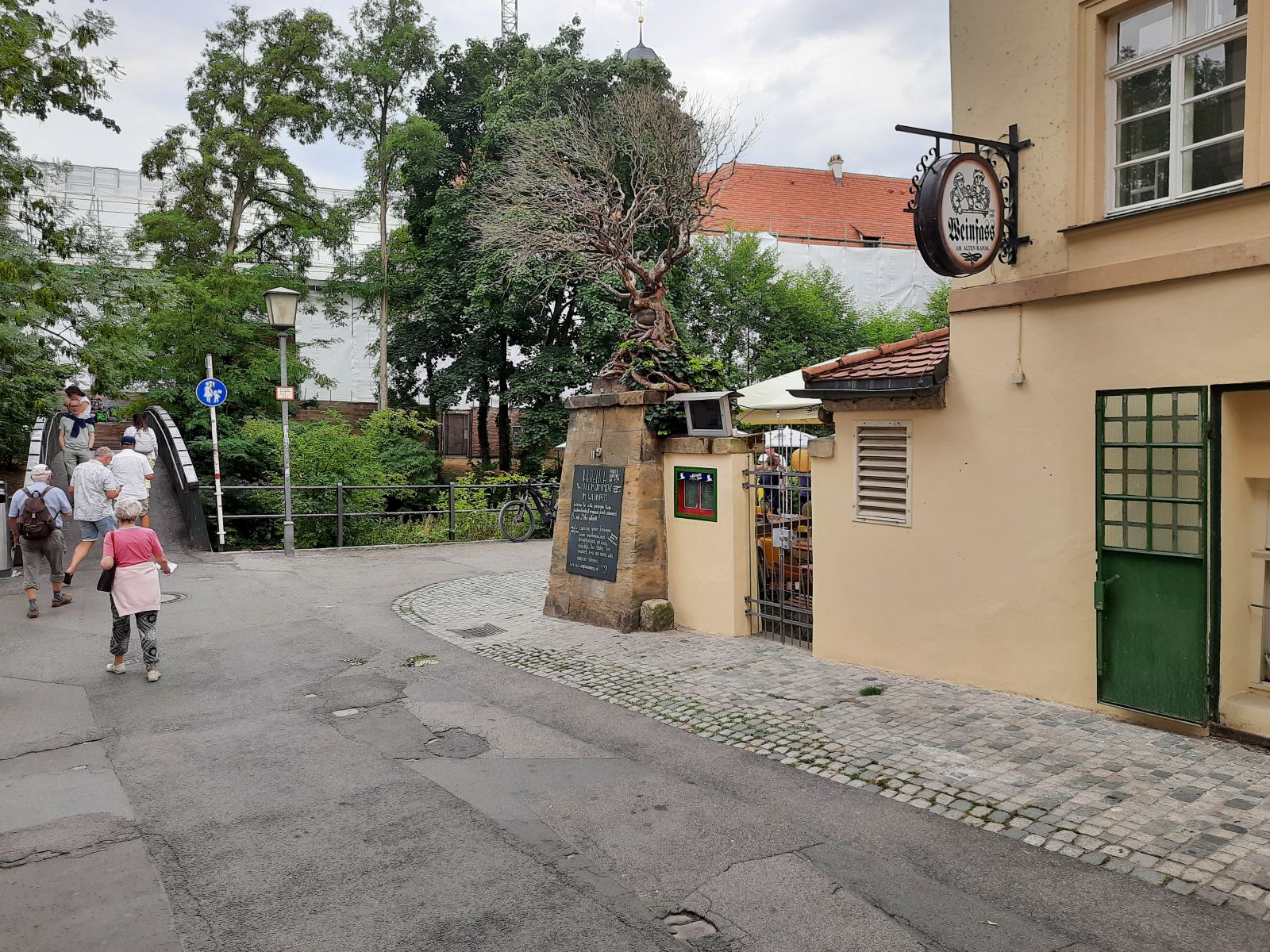 Von Spitagasse Richtung Museumsbrücke. Rechts vorn das "Narrenschiff".