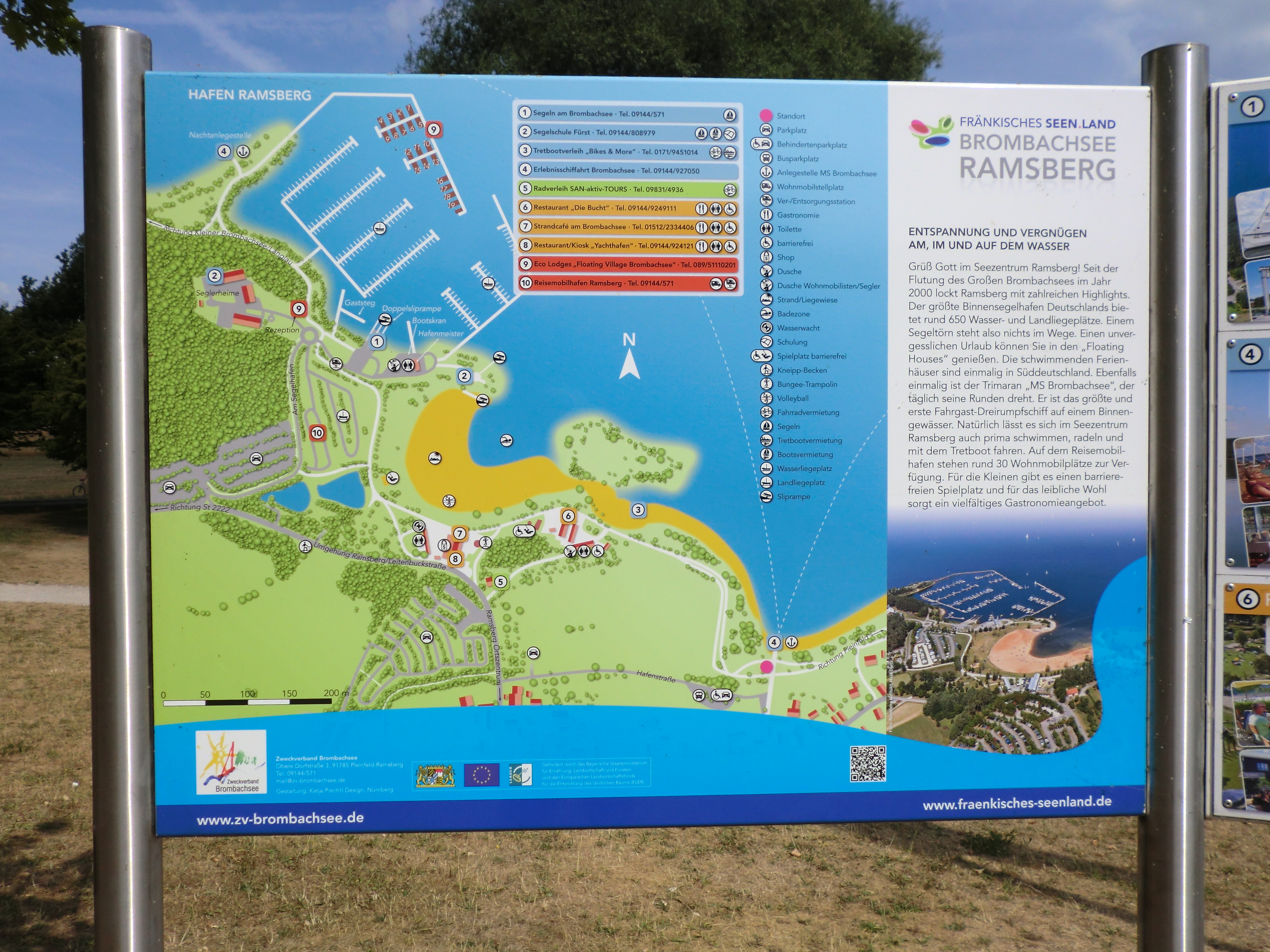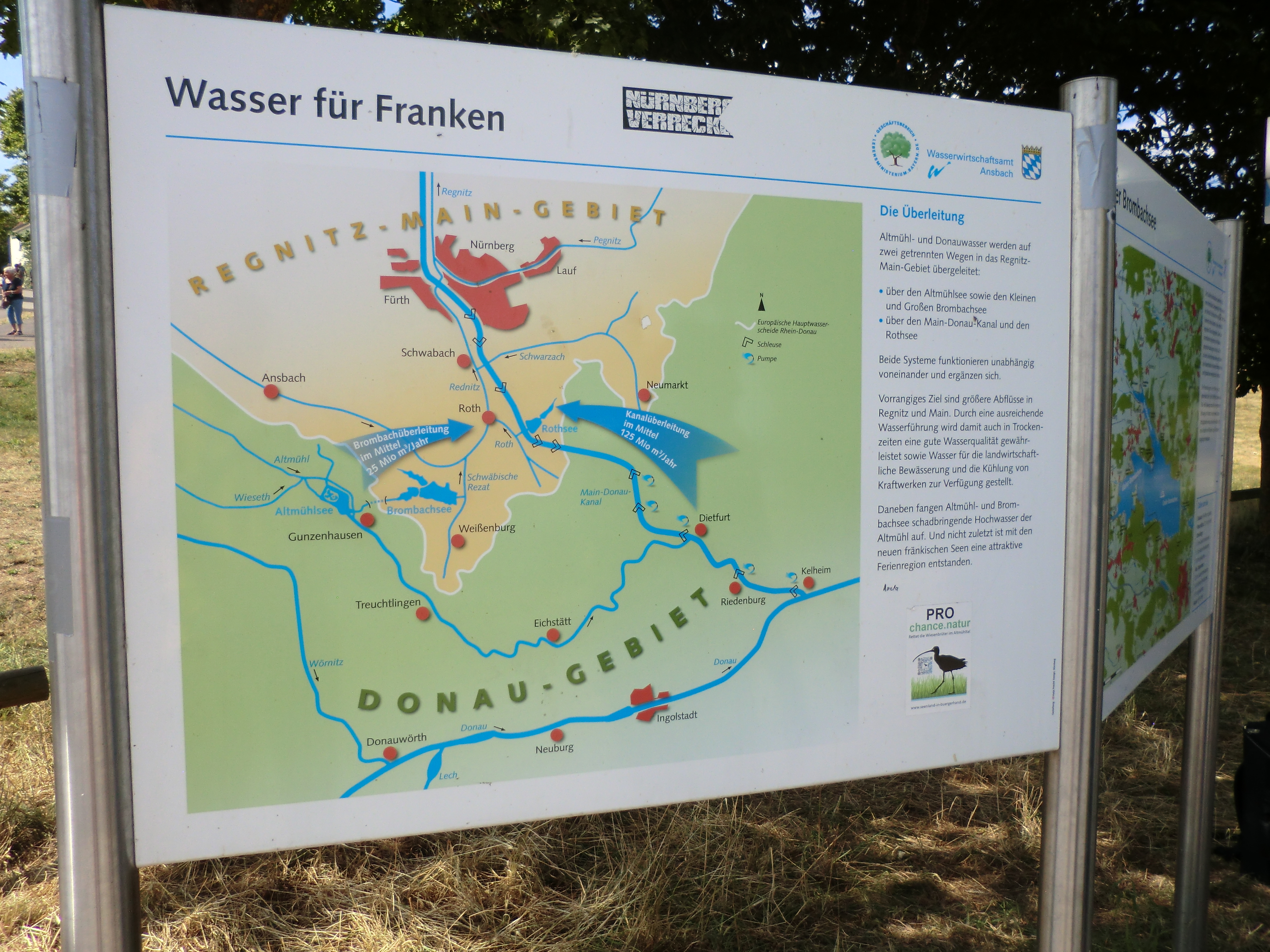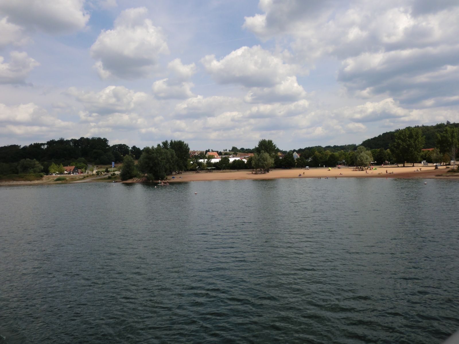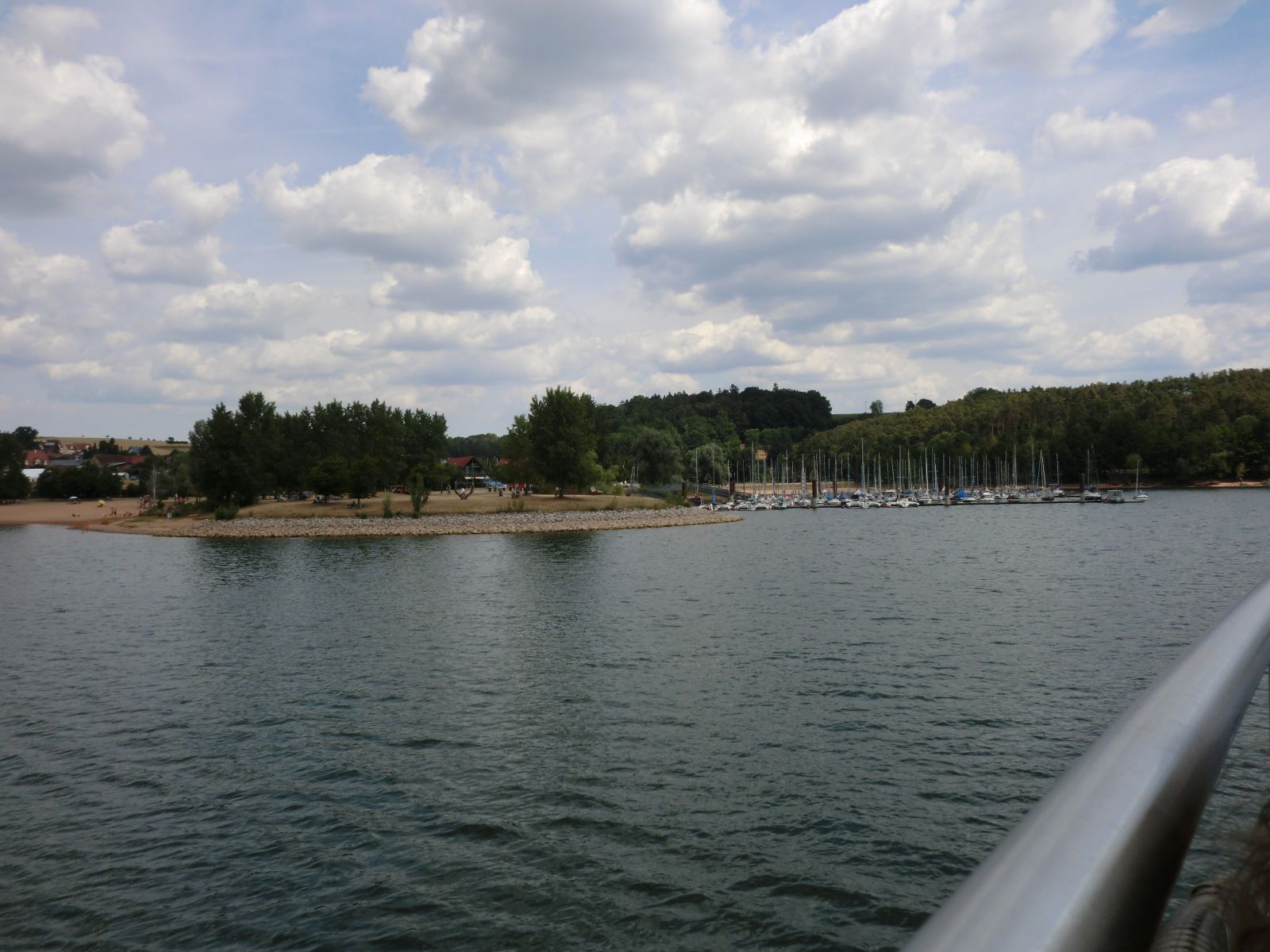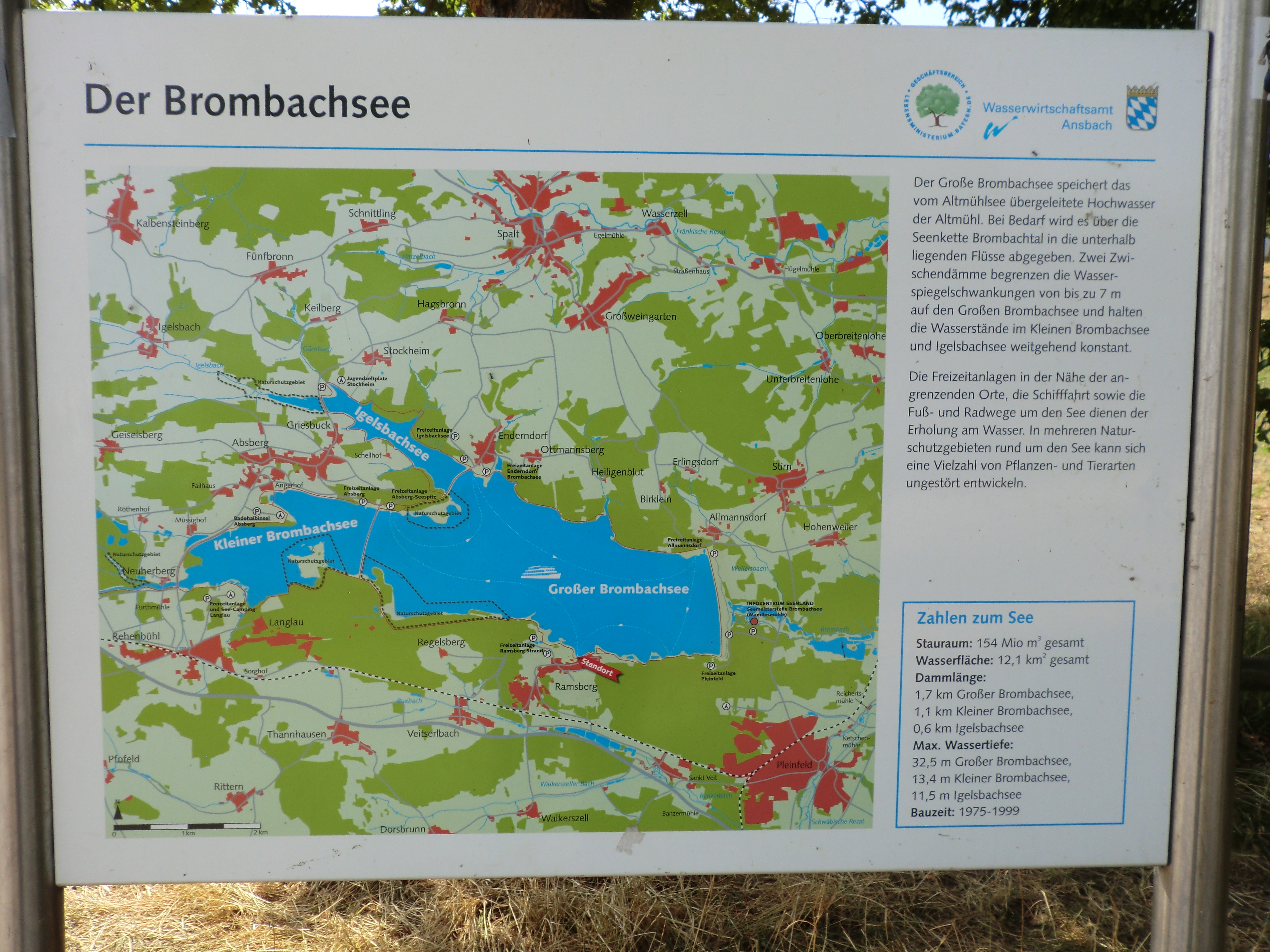 Dahinter ist die Staumauer zwischen Kleinen und Grossen Brombachsee.